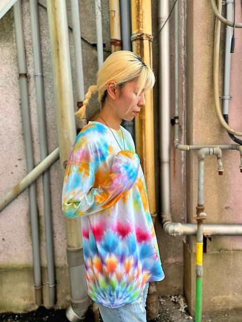 タイダイ染め Tie-dye 長袖Tシャツ ビッグシルエット Mサイズ 曼荼羅 カラフル HD22-09