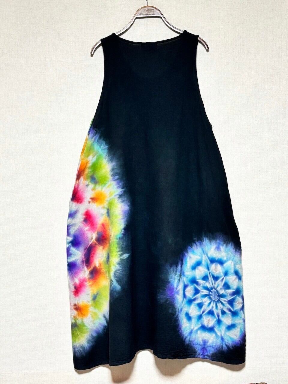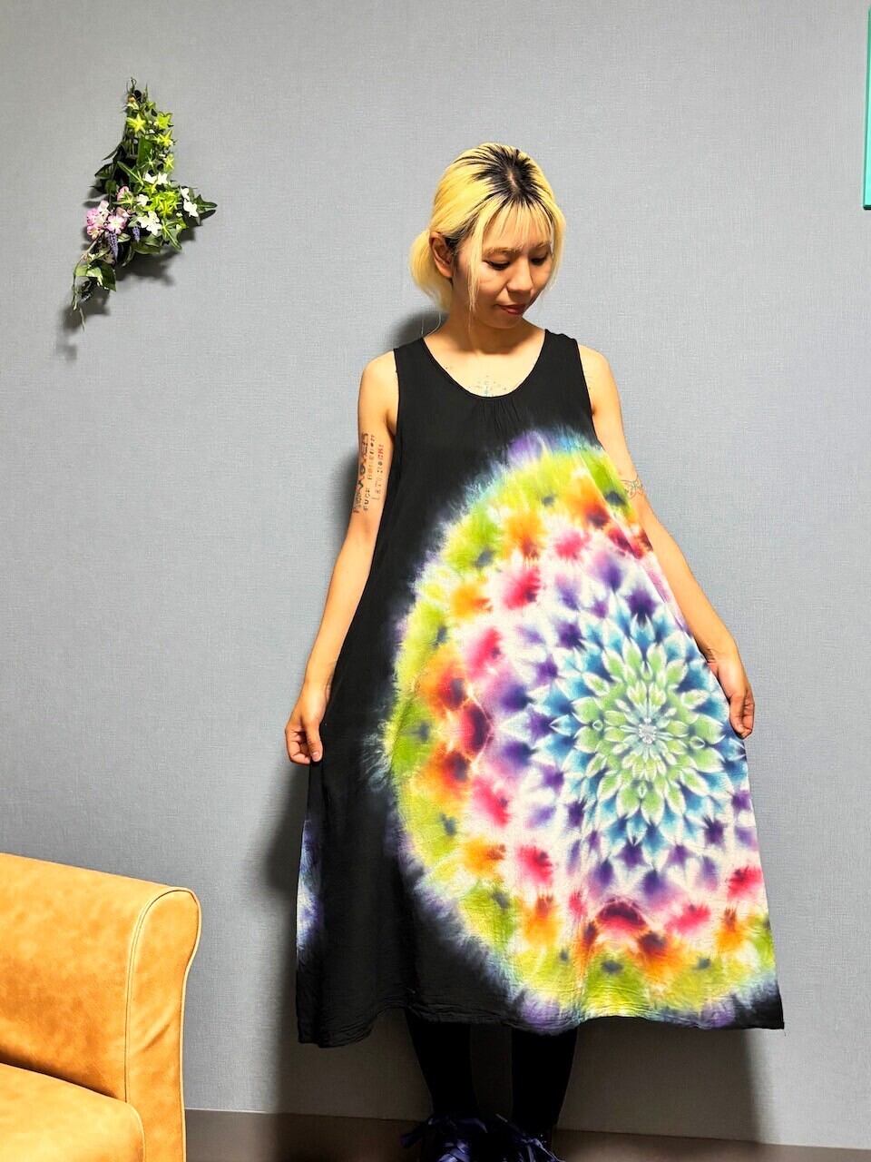 タイダイ染め 新型ノースリーブワンピース ブラックビューティ 美しく幻想的な大曼荼羅 HD23-07