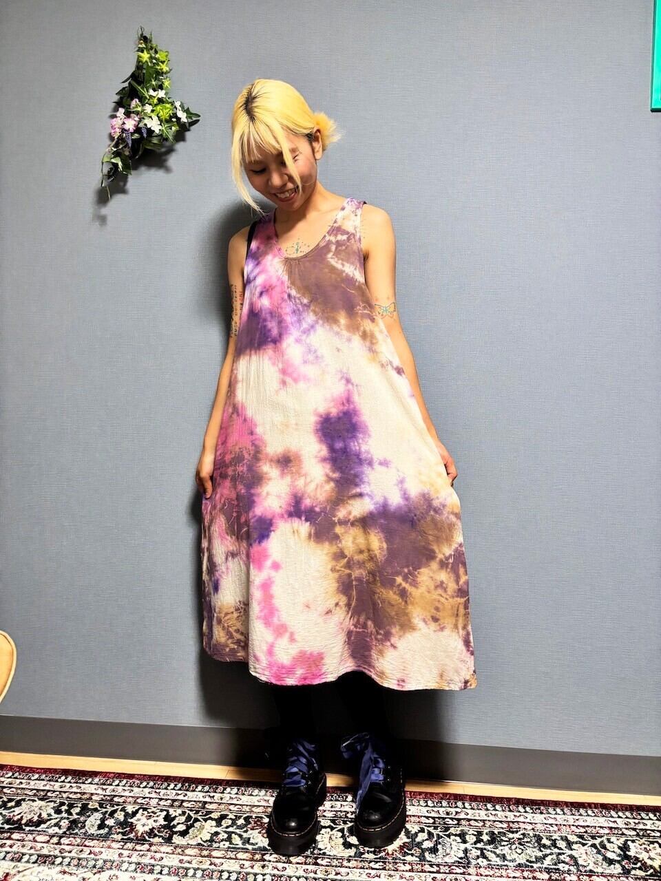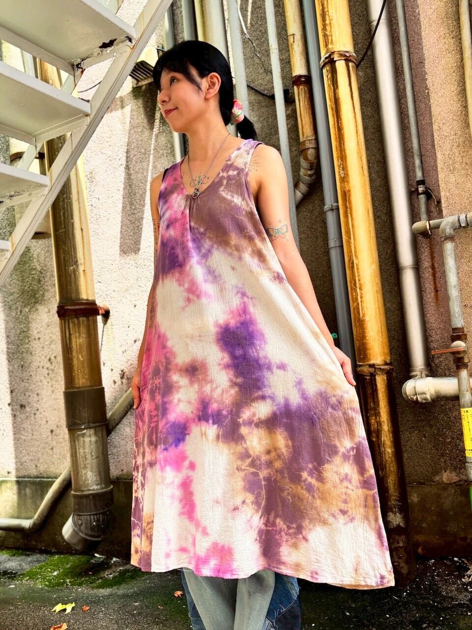 タイダイ染め ノースリーブワンピース ブラウン×ピンク HD23-17