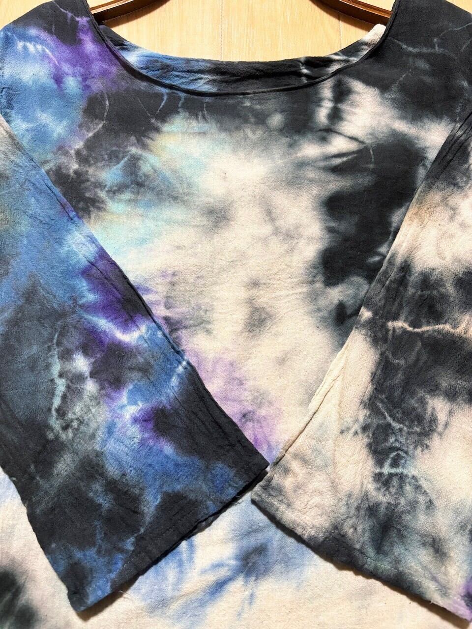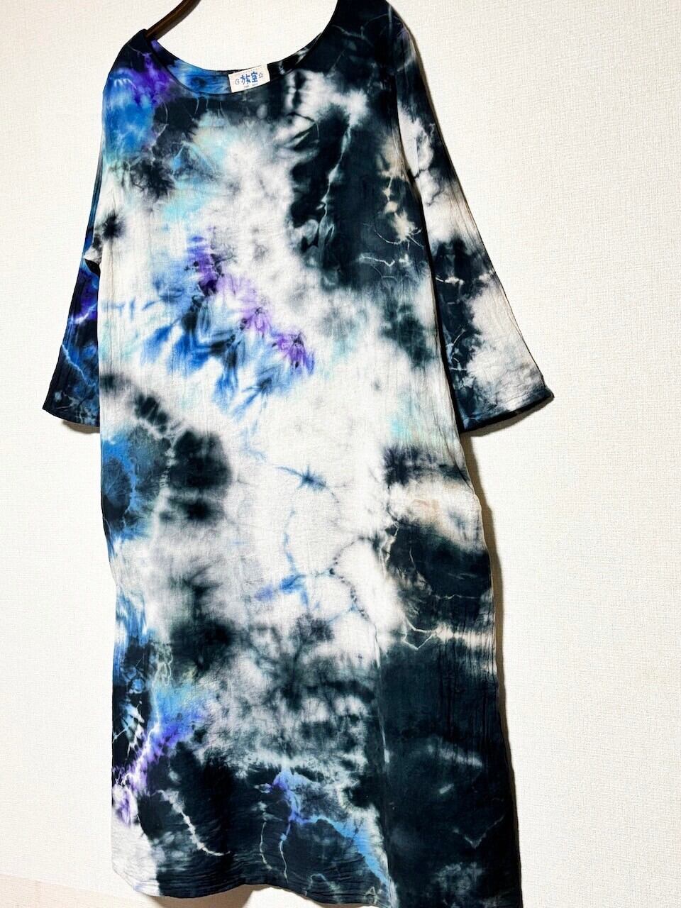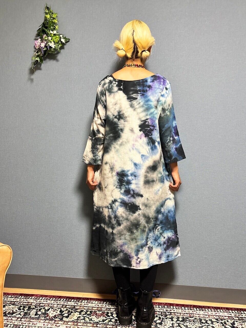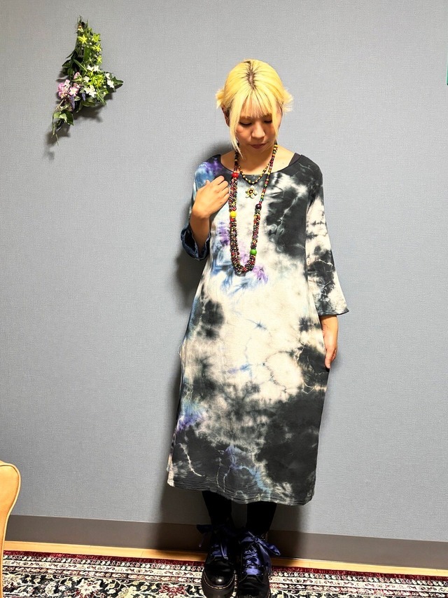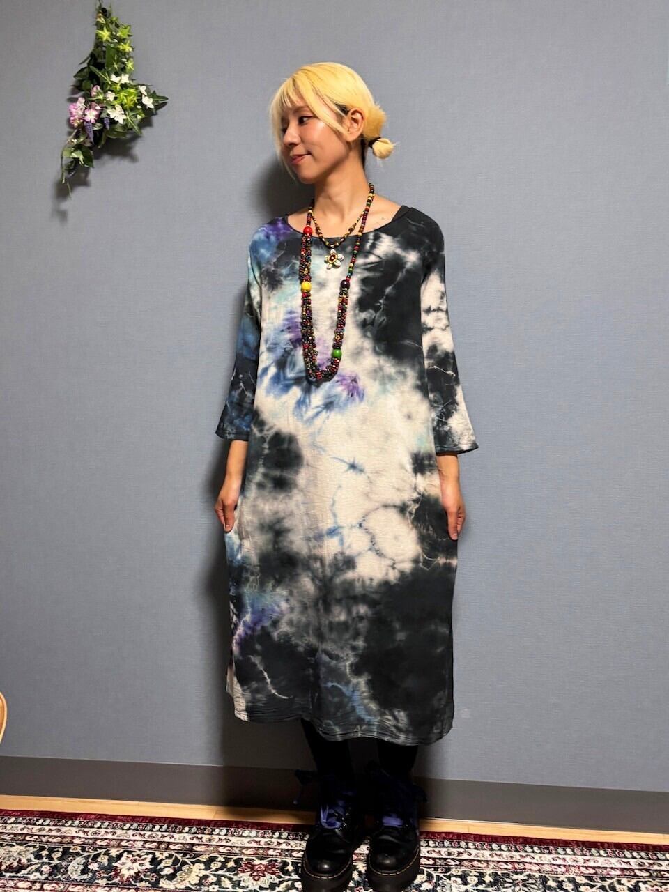 タイダイ染め Tie-dye 長袖ワンピース ブラック×パープルブルー HD23-18