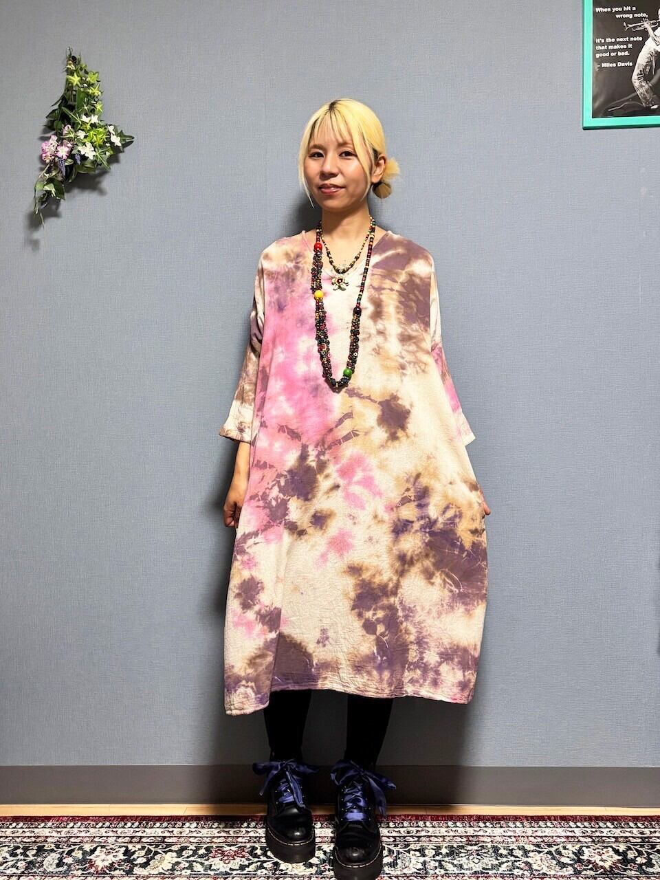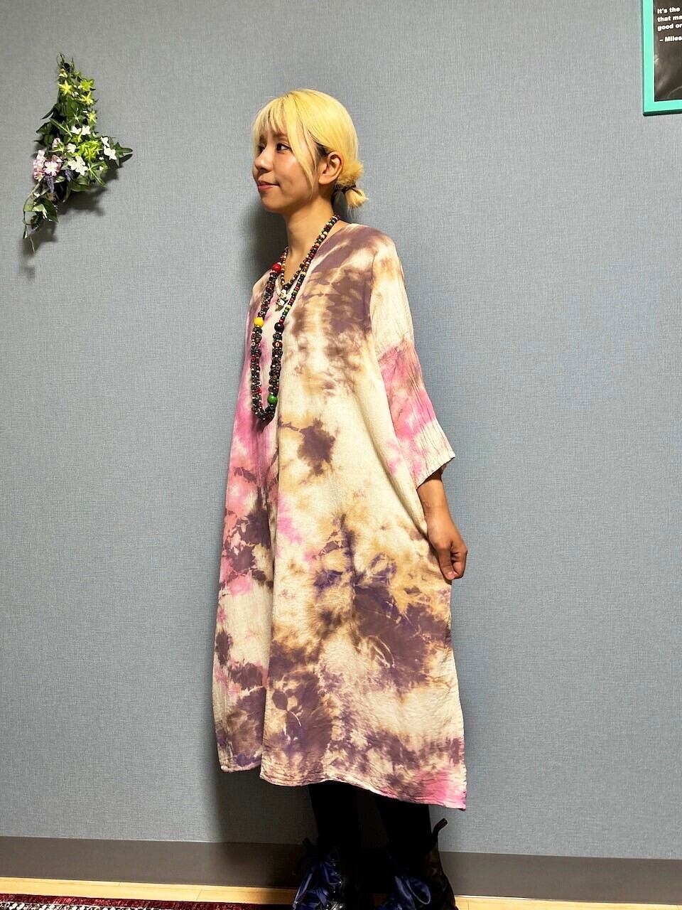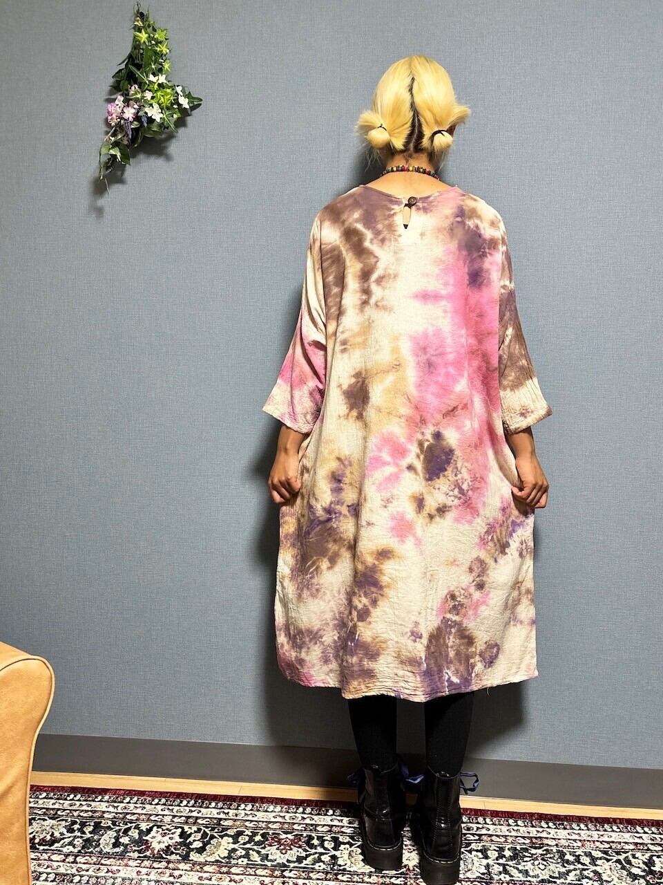 タイダイ染め Tie-dye ワンピース ブラウン×ピンク Hippies Dye最新作 HD23-19