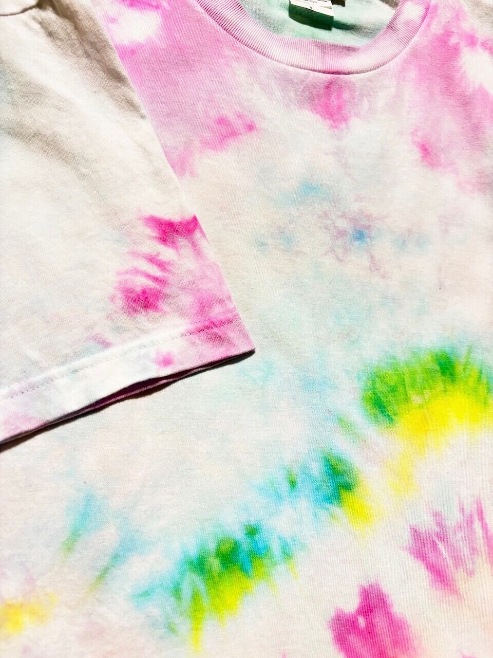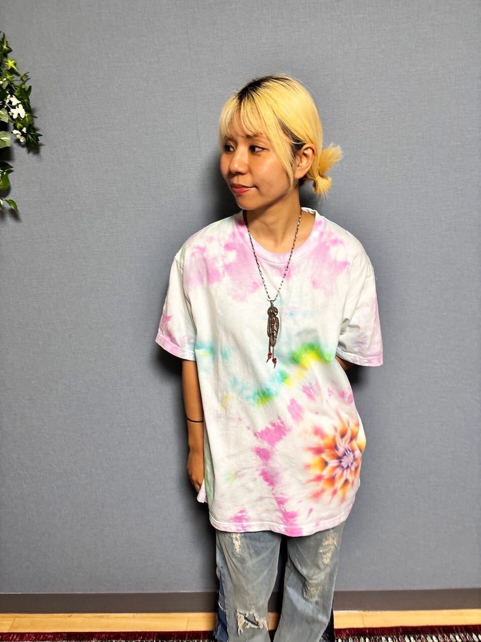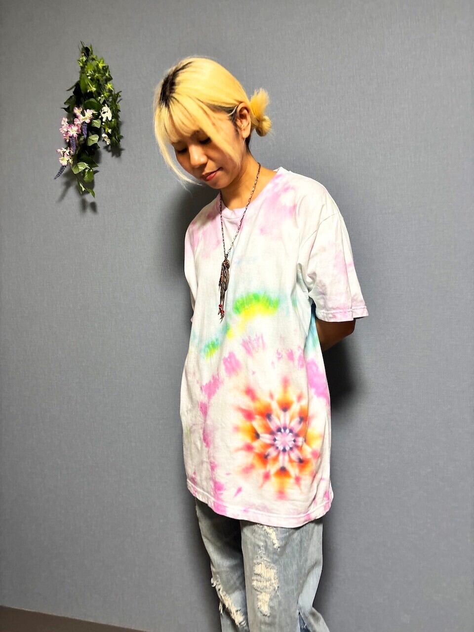 タイダイ Tie-dye Tシャツ Lサイズ 曼荼羅 ピンク×グリーン×ホワイト ムラ染め Hippies Dye HD23-31